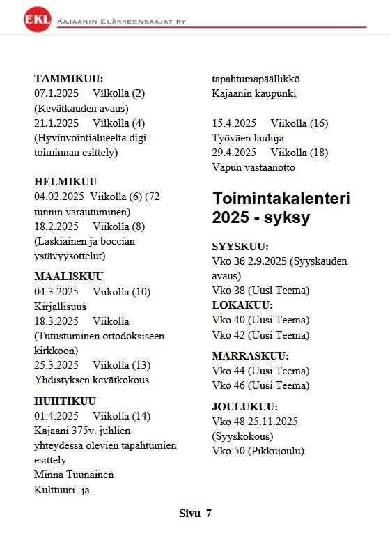 Tapahtumia 2025
